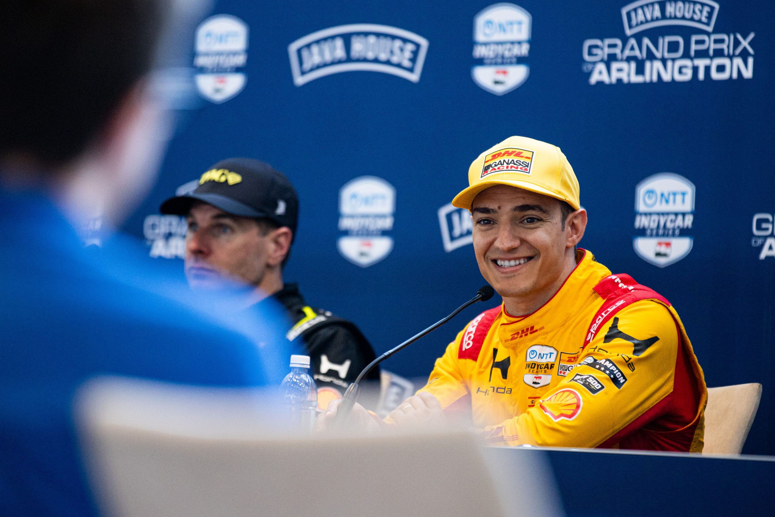 Alex Palou shares his thoughts in the media center after his runner-up finish in the Java House Grand Prix of Arlington. (Photo: Dylan Nadwodny | The Podium Finish)